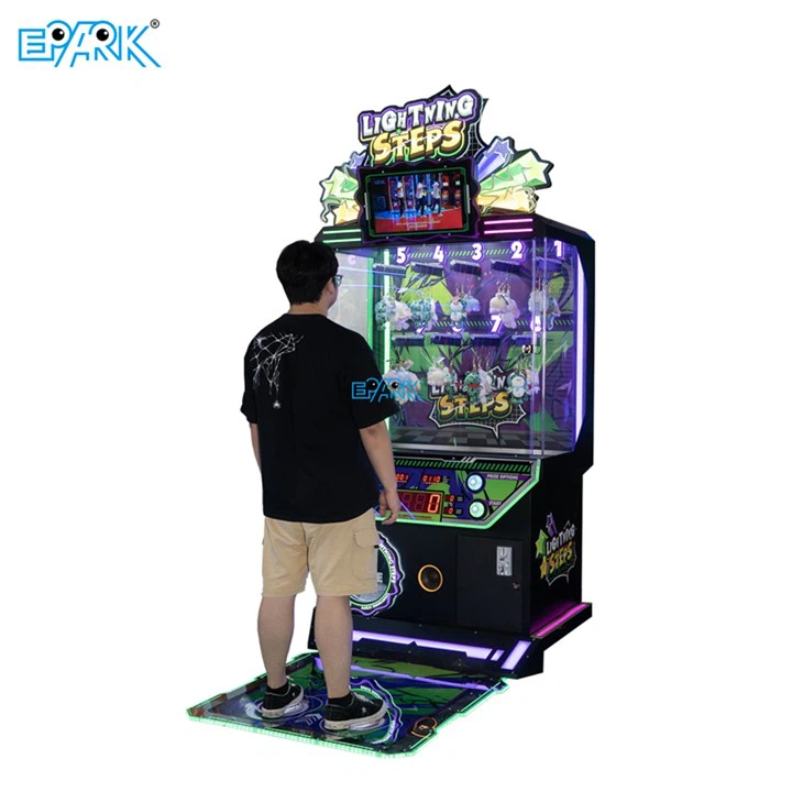 Montez sur le tapis de sol éclairé, suivez les cibles numérotées et gagnez des jouets en peluche avec des mouvements précis dans cette machine de jeu de rédemption interactive et amusante.